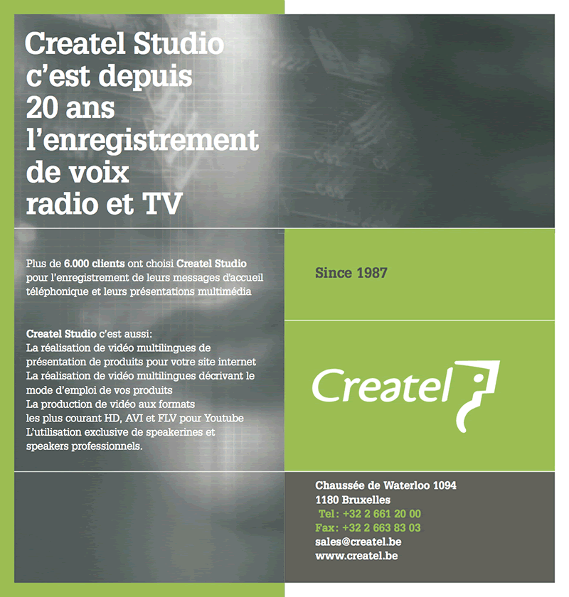 For many years we are having the chance to work for Createl. The entire visual communication has been designed from the brand ID to the promotional materials: business papers, leaflets, brochures, CD covers, posters, fact-sheets. Just few recent realisations are displayed here.